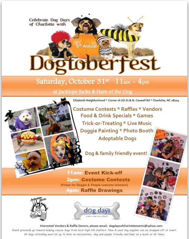 Come out to Dogtoberfest this Halloween. This is an event that we will have a booth set up at with some ofour adoptable dogs but you are welcome to come out with your own dogs and join in the fun!